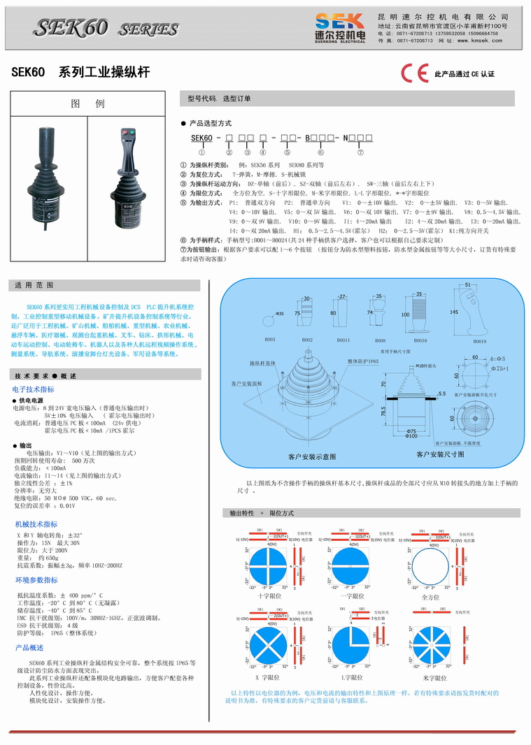 n SEK66 系列工业操纵杆适用于矿山机械,船用机械,工程机械等