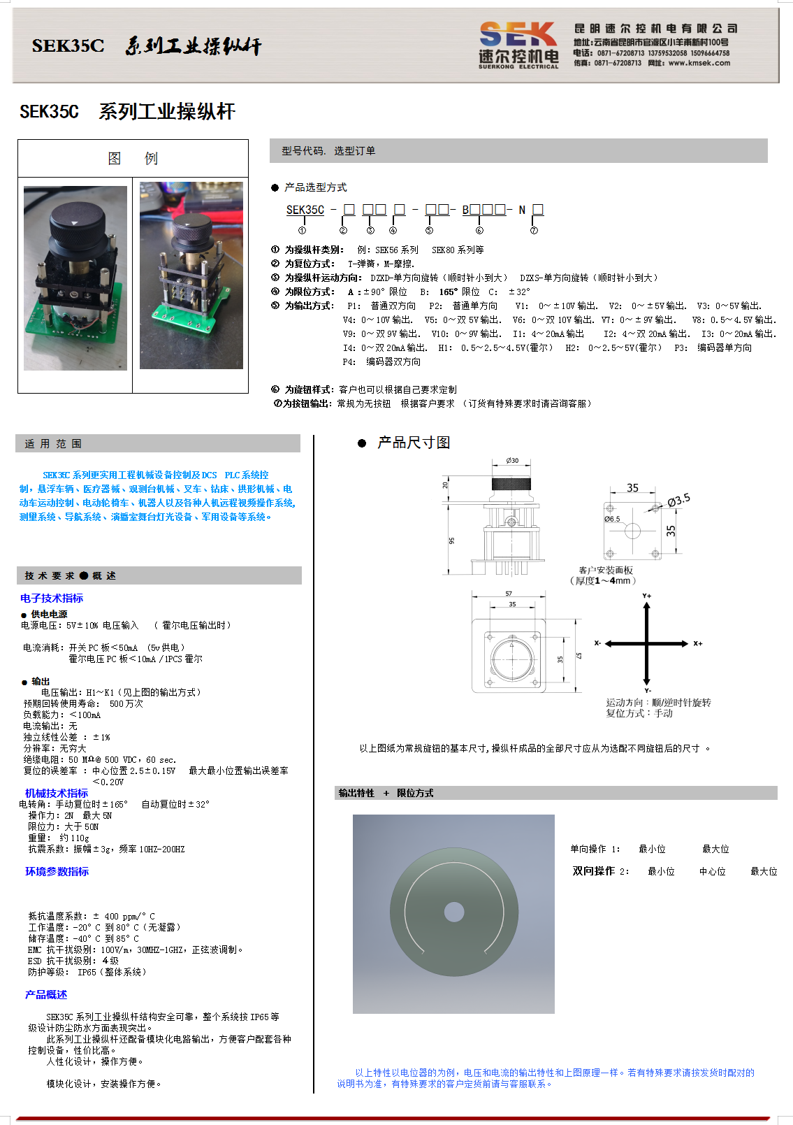 n SEK66 系列工业操纵杆适用于矿山机械,船用机械,工程机械等