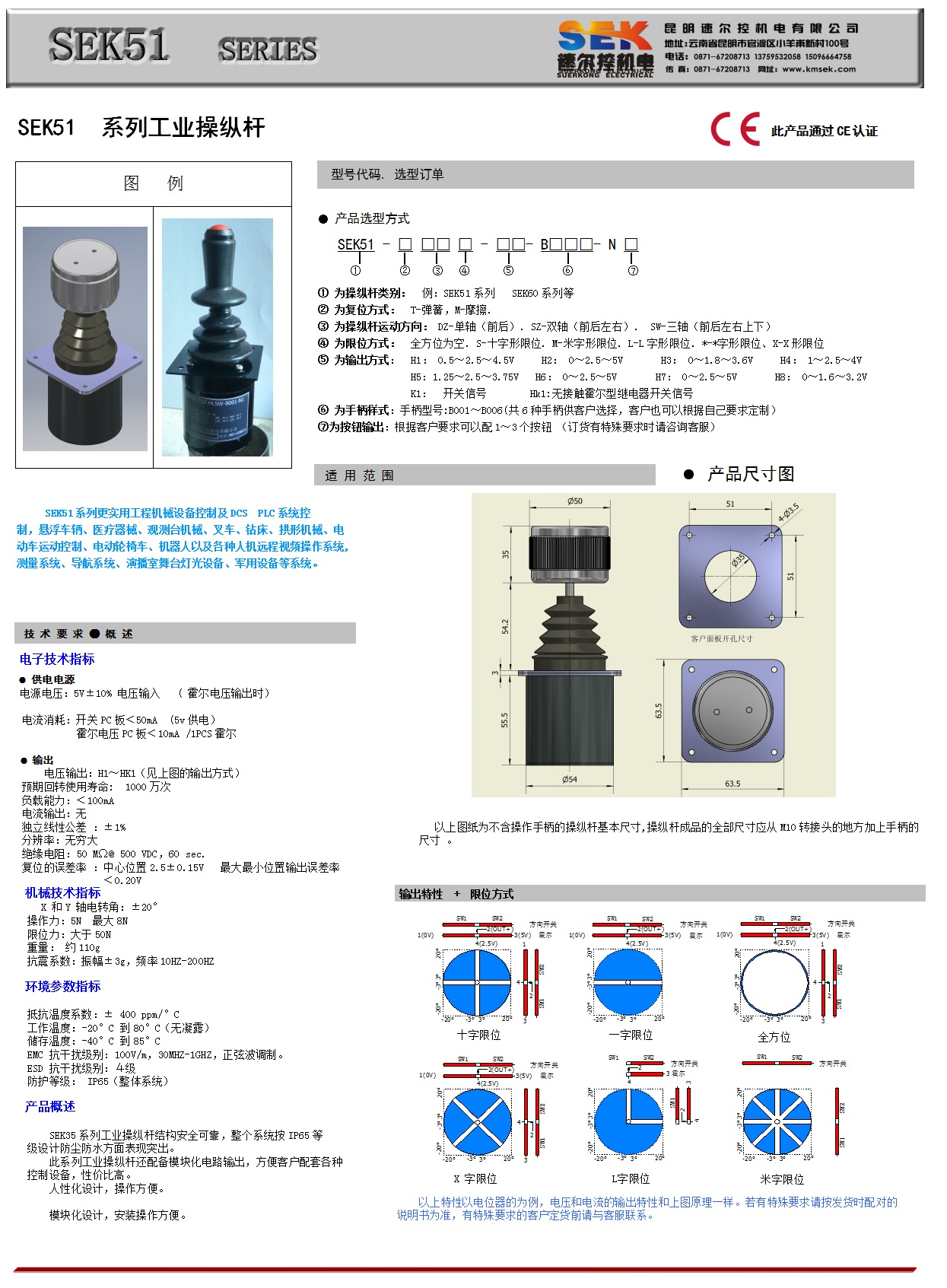 n SEK66 系列工业操纵杆适用于矿山机械,船用机械,工程机械等